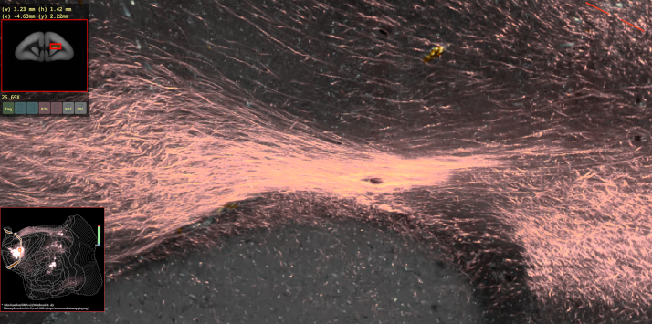 高解像度の脳画像を、手軽にウェブブラウザ上で表示できるようにするため、JavaScript を使って高解像度画像ビューアを自作しました。初めての JavaScript で、正直スパゲッティコードだらけですが(笑)、意外とちゃんと動いています。ぜひ画像をクリックして、コモンマーモセット脳画像の美しさをご覧ください!